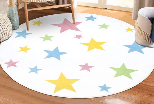 "Transform Your Space with Our Machine Washable Starry Area Rug in White, Red & Yellow! ...