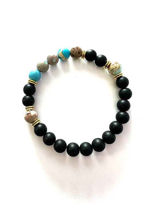 Calmness - Imperial Jasper (Blue)/Blk Obsidian Bracelet 8mm